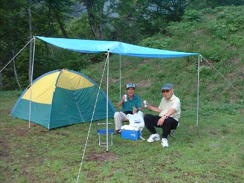 9/5テント設営後、まずは1杯。