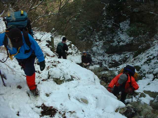 1番目の滝は左岸を登る。
