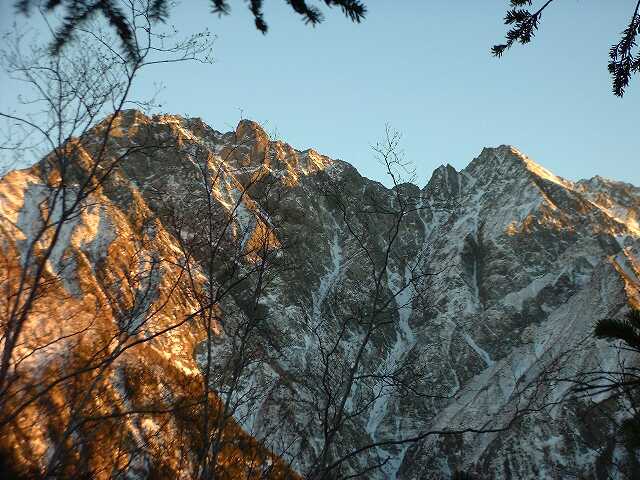 夕焼けに染まる滝谷。16:27。