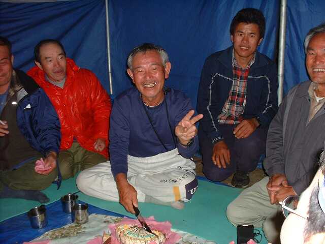 谷口氏68歳の誕生パーティーでケーキにナイフを入れる谷口氏。おめでとうございます。