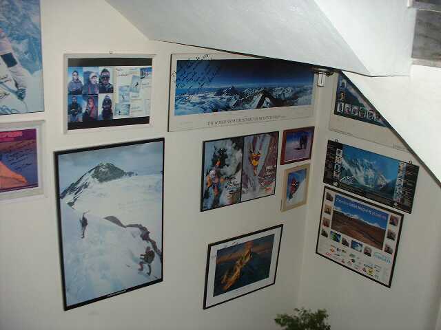 カトマンズのホテル「GARUDA]には廊下の壁一杯にエベレスト登頂者の写真が貼られている。(10/31)